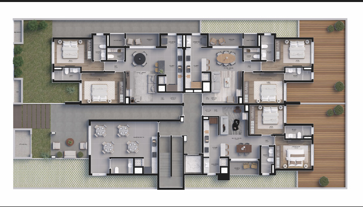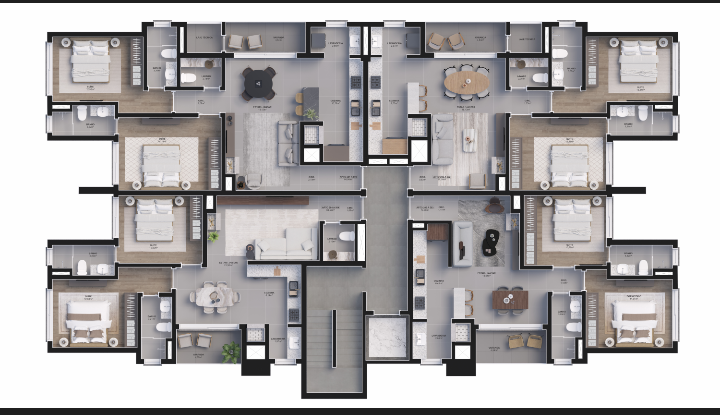 São 19 unidades, num prédio de alto padrão de acabamento com área privativa de 79,70 ate 153,97m²